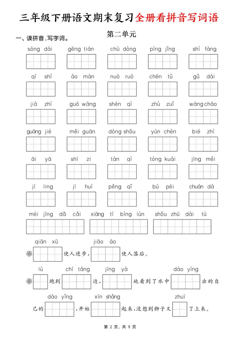 三下语文期末复习全册看拼音写词语(含答案9页)
