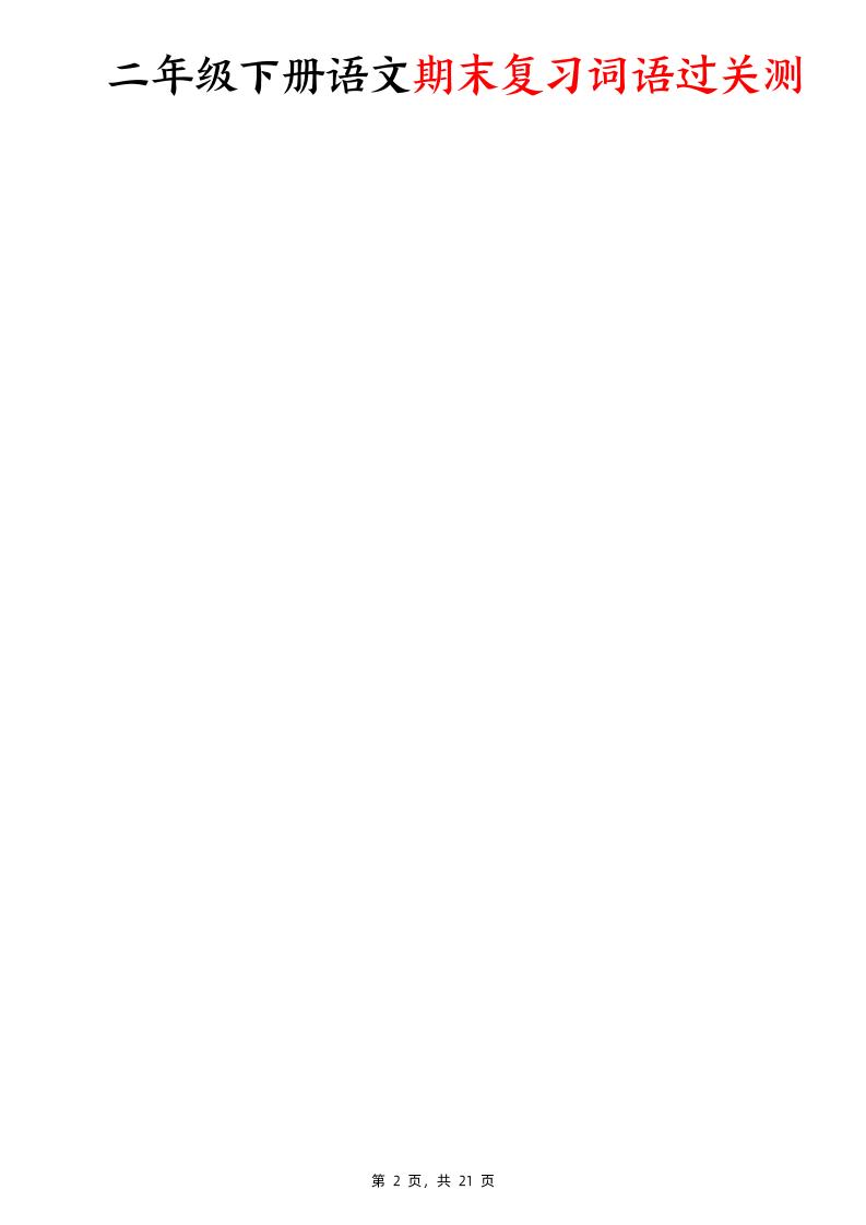 首页 > 全部 > 学科资源 > 二下语文期末复习词语过关测(含答案21页)