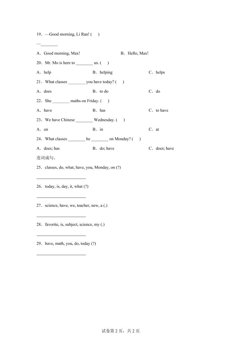 首页 > 全部 > 学科资源 > 2025-2026学年北师大版(2024)英语四年级上册Unit1BacktoschoolLesson2基础练习(同步练)