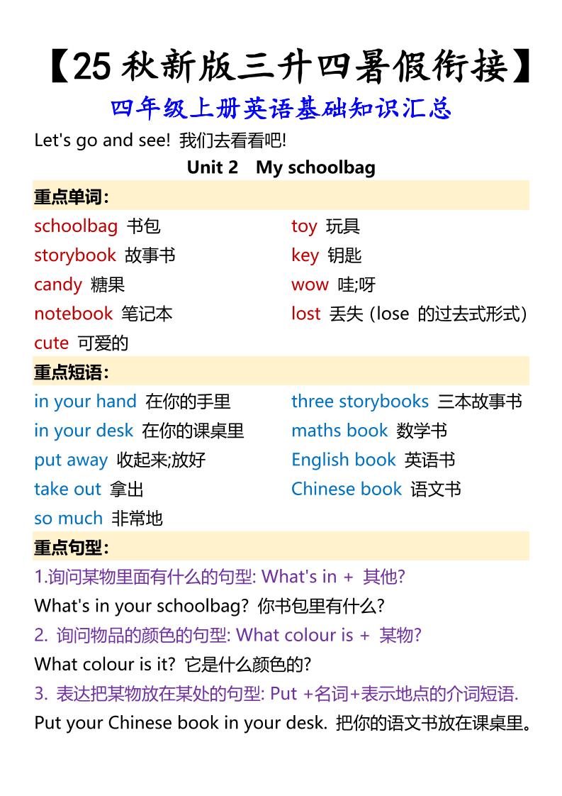首页 > 全部 > 学科资源 > 【2025秋新版】四年级上册英语基础知识汇总