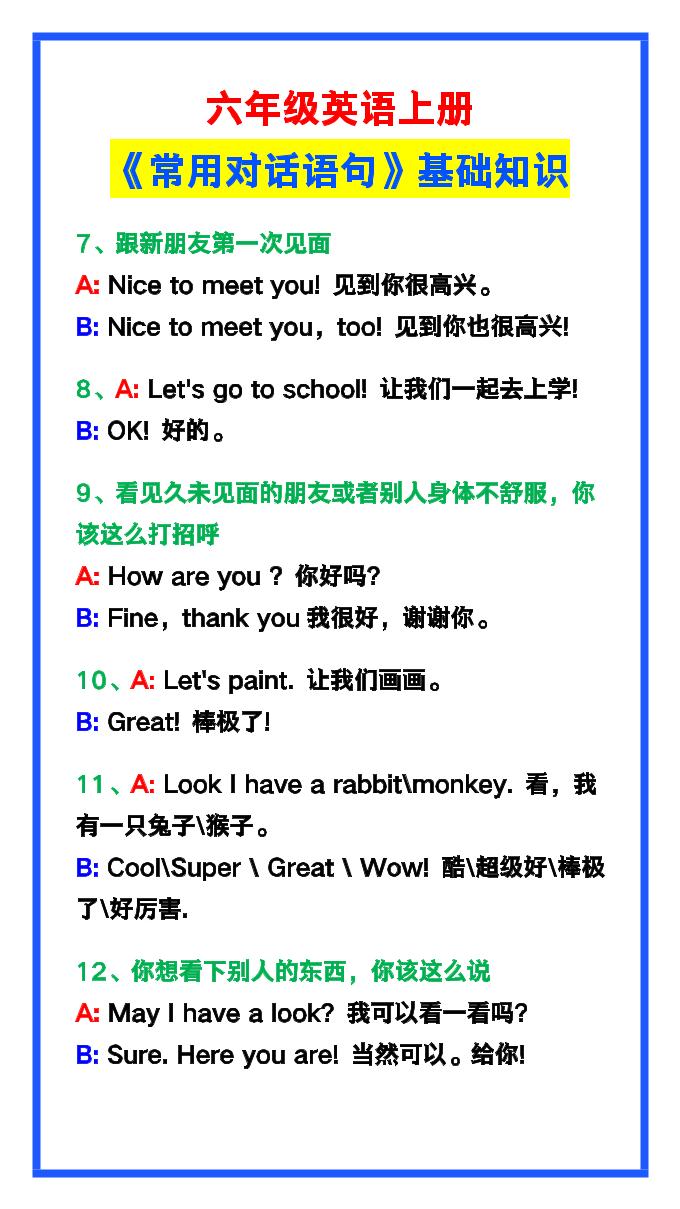 首页 > 全部 > 学科资源 > 【2025秋新版】六年级英语上册《常用对话语句》